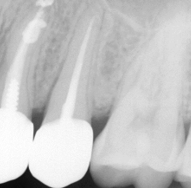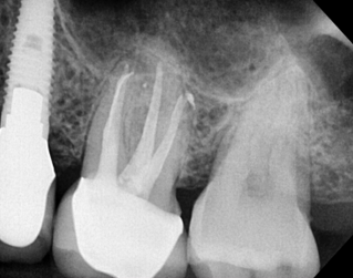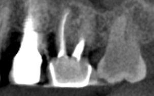 CBCT Scan of same tooth #14, notice the lesion on the bone at the tip of the left root