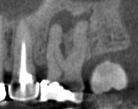 CBCT Scan on same tooth #13, there is a lesion at the tip of the root causing sinus membrane inflammation.