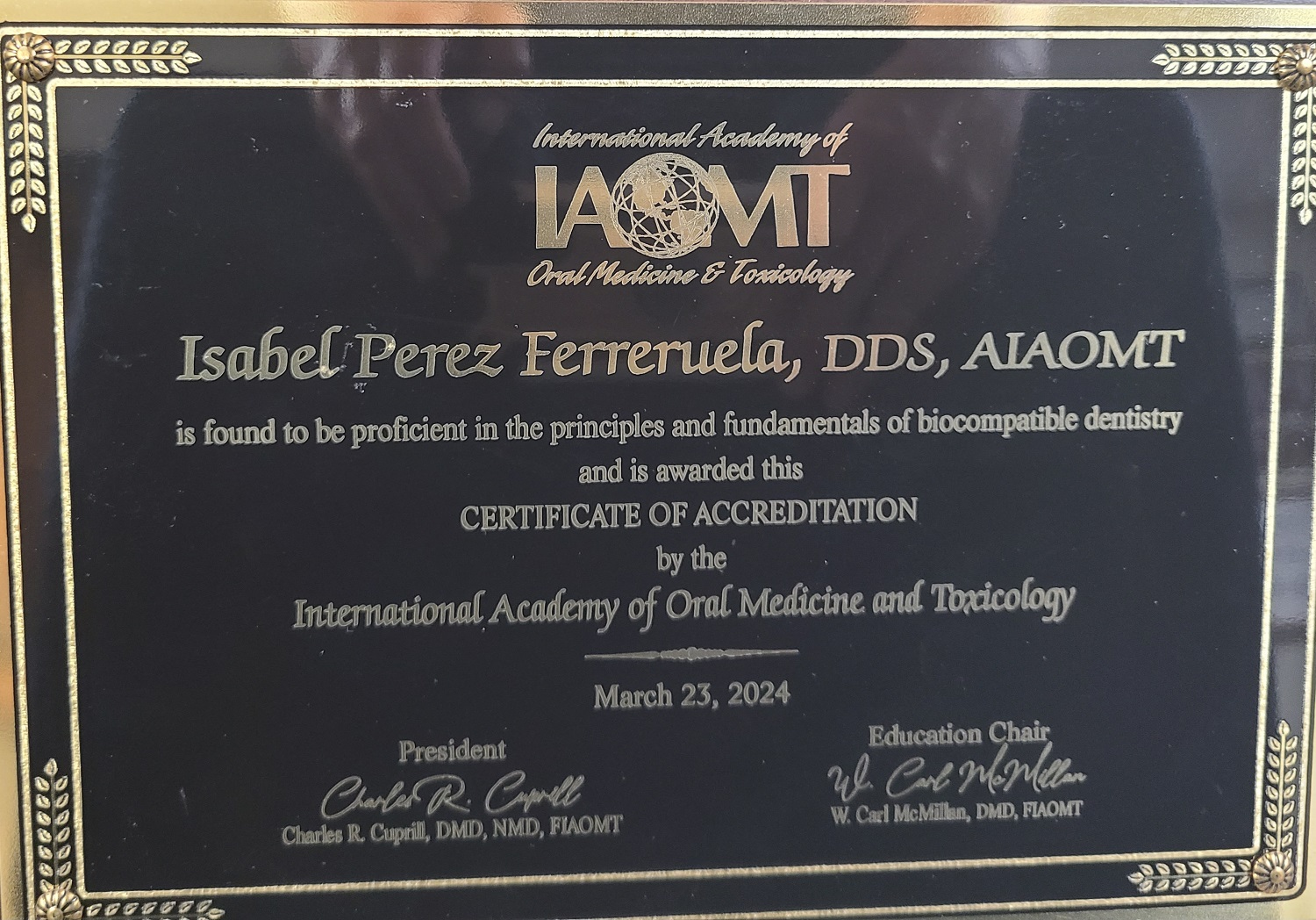 Doctor continues her studies in the latest technology and techniques to achieve Health. She got Accredited in the IAOMT understanding the Oral and Body connection to achieve overall Health. Through this organization she removes mercury containing fillings (known as silver fillings) safetly.